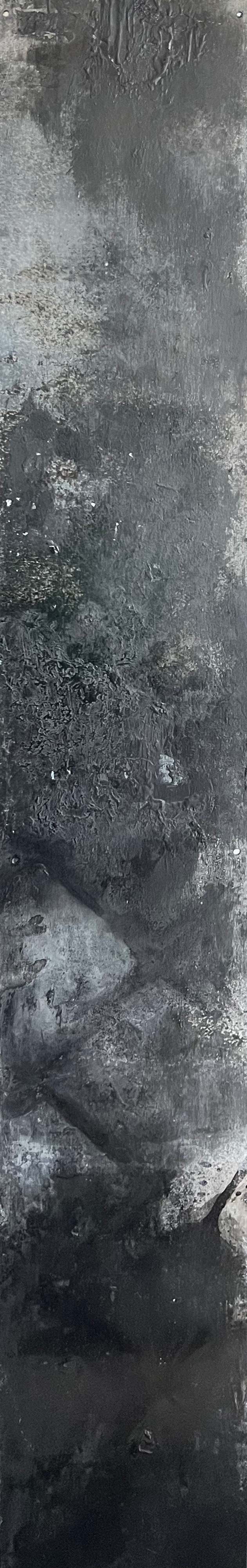 Graphite-glazed photograph on aluminium.